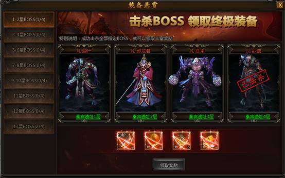 玩家在新手期通过完成装备悬赏,击杀指定目标BOSS可以快速装备