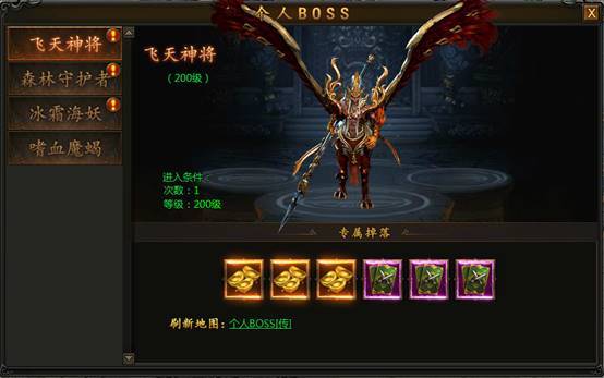 击杀个人BOSS可以掉落大量BOSS积分,BOSS积分可在积分商城兑换装备
