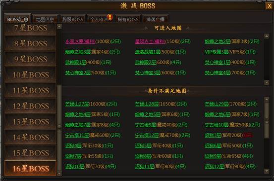 击杀野外BOSS可以掉落装备,BOSS星级越高,掉落极品装备的概率越高
