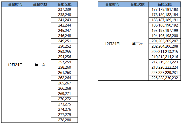 为了给您提供更好的游戏体验和感受,我们将对部分服务器进行合服操作,合服时间会因为数据量大小提前或延迟。服务器合服后,原服务器入口依然保留,参与合服的玩家依然可以选择老的服务器名进行进入。