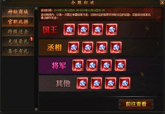 活动期间,到达对应官职可获得大量钻石奖励。