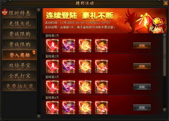 活动期间,每天登录即可领取大量奖励道具。