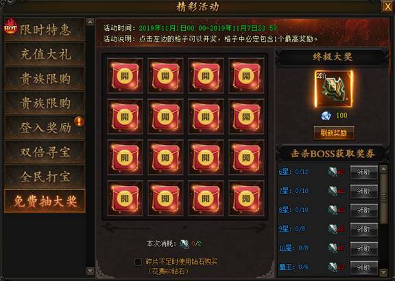 活动期间,击杀跨服对应的BOSS可获得额外奖励。